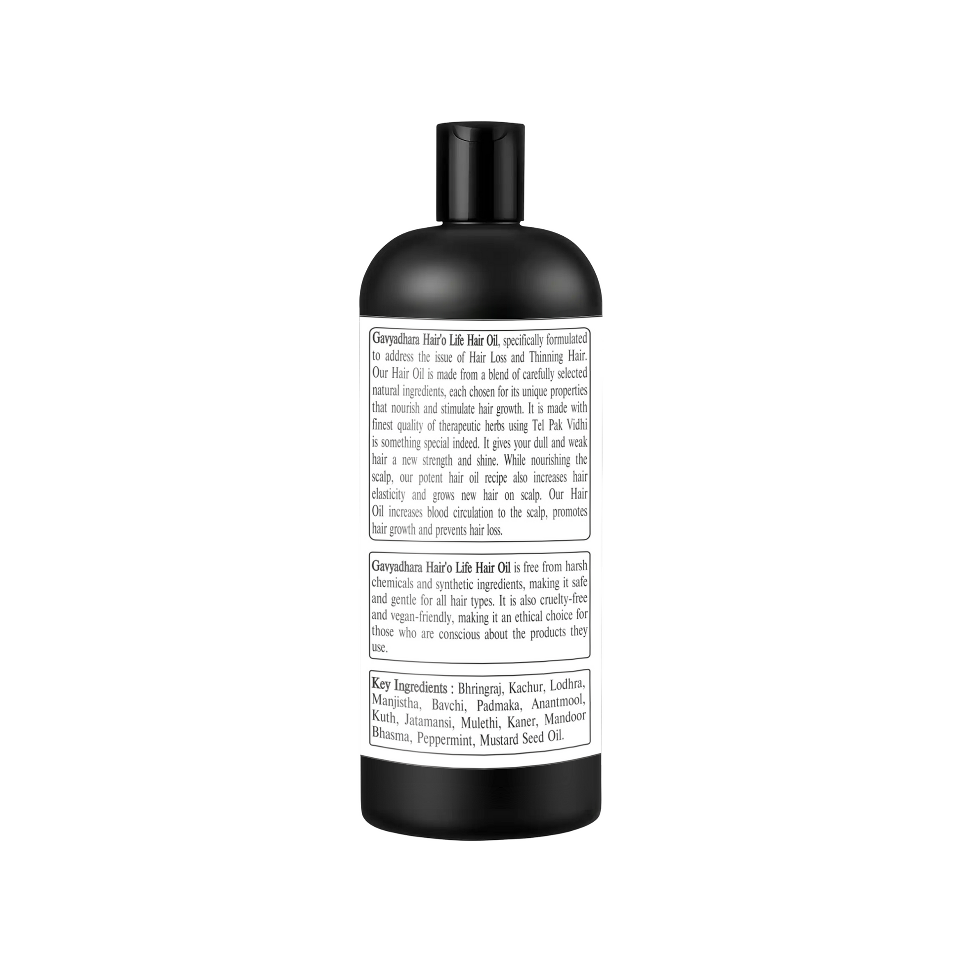 Best Herbal Medicated Hair Oil, Anti Hair Fall Anti Dandruff Solution, Grows New Hair, Removes Dryness of Scalp, Increases Scalp Blood Circulation Gavydhara Hair o Life Medicated Hair Oil, specially formulated to address the issue of Hair Loss and Thinning Hair. This Hair Oil is made from a blend of carefully selected natural ingredients, each chosen for it s unique properties that nourish and stimulate hair growth. It is made with finest quality of therapeutic herbs using Tel Pak Vidhi is something special indeed. It gives your dull and weak hair a new strength and shine. While nourishing the scalp, our potent hair oil recipe also increases hair elasticity and grows new hair on scalp. Gavyadhara Hair o Life Hair Oil increases blood circulation to the salp, promotes hair growth and prevent hair loss. Gavyadhara Hair o Life Hair Oil is free from harsh chemicals and synthetic ingredients, making it safe and gentle for all hair types. It is also cruelty-free and vegan-friendly, making it an ethical choice for those who are consicous about the products the use. Key Ingredients Bhringraj, Kachur, Lodhra, Manjistha, Bavchi, Padmaka, Anantmool, Kuth, Jatamansi, Mulethi, Kaner, Mandoor Bhasma, Peppermint, Mustard Seed Oil Directions to Use As prescribed by the physician or take generous amount (approx. 5 ml for short hair 10 ml for long hair) of this hair oil on your palm gently massage onto your scalp and hair with your finger tips in a circular motion for around 8 to 10 minutes. Ensuring the entire scalp and hair is getting nourished. Leave it overnight and wash hair in morning. Regularly use it for 3 months with Gavyadhara Gaujal Shampoo for best results. Caution Keep out of reach of Children. Do not apply on wounds. Natural product may slightly vary in color and aroma from batch to batch, however this does not change the efficacy of the product. Special Features of Gavyadhara Hair o Life Medicated Hair Oil 100% Vegan, Paraben Free, Trans Fats Free, No Harsh Chemical, Cruelty Free